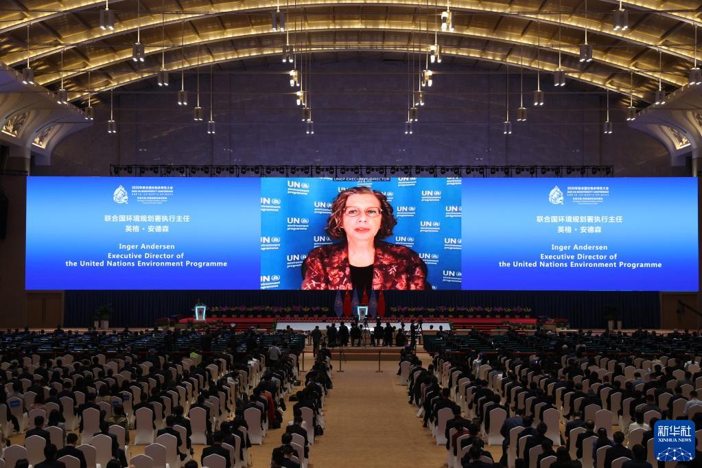 10月11日,《生物多样性公约》第十五次缔约方大会在云南昆明开幕。这是联合国环境规划署执行主任英格·安德森在开幕式上发表视频致辞。