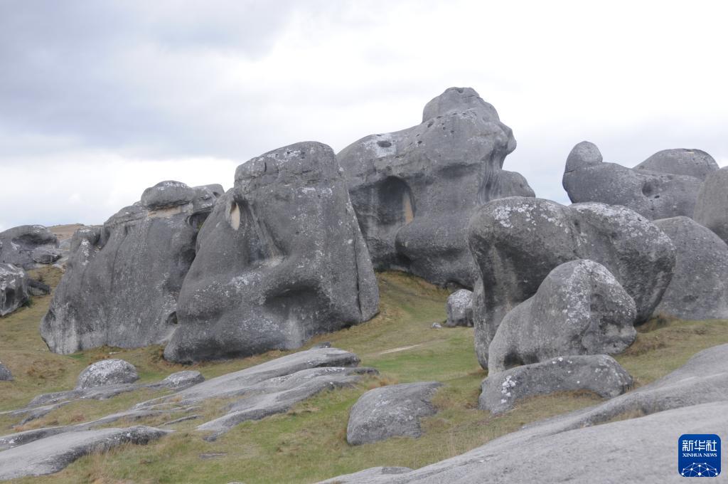 这是10月11日拍摄的位于新西兰城堡山的巨石阵。 位于新西兰的城堡山以奇兀耸峭的巨石阵而闻名。这些巨石好似城堡废墟,簇拥高耸在小山丘上,故得名城堡山。这是一片世界闻名的攀岩地点,在好天气时可以看到攀岩爱好者们在此展示攀岩技能。 新华社记者 卢怀谦 摄