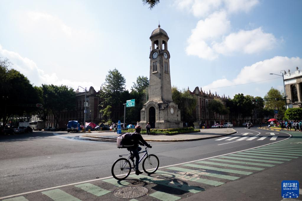 9月27日,在墨西哥首都墨西哥城,一名男子骑车驶过中国钟。 中国钟位于墨西哥首都墨西哥城市中心的布卡雷利大街。其初建于1910年,当时,正值墨西哥爆发独立战争100周年。为了纪念墨西哥历史上这个重要的日子,当时在墨华人出资修建了钟楼。1913年,钟楼在墨西哥内战中遭炮击毁坏。在1921年9月27日墨西哥宣告独立100周年之际,墨西哥华人再次筹资重建被毁的钟楼,同当地人民共同纪念墨西哥历史上这个具有里程碑意义的日子。2021年的9月27日,恰逢中国钟重修100周年,在这个特殊的日子里,中国钟继续以悠扬的钟声见证两个世纪以来延绵不绝的中墨友谊。 新华社记者 辛悦卫 摄 |