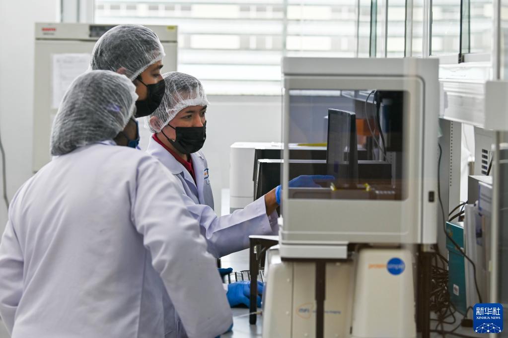 10月5日,技术人员在马来西亚吉隆坡郊区的发马公司灌装工厂实验室工作。新华社记者 朱炜 摄
