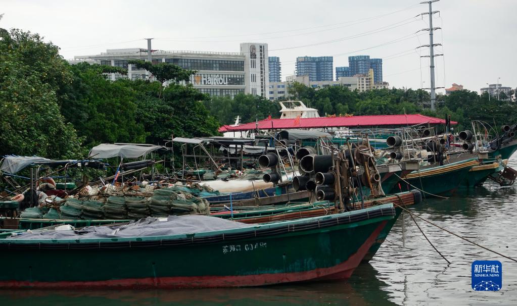 10月13日,渔船停靠在海口市龙珠湾避风。