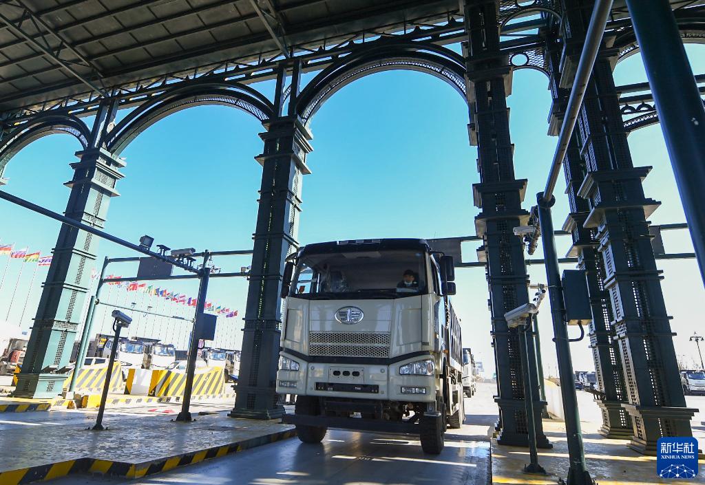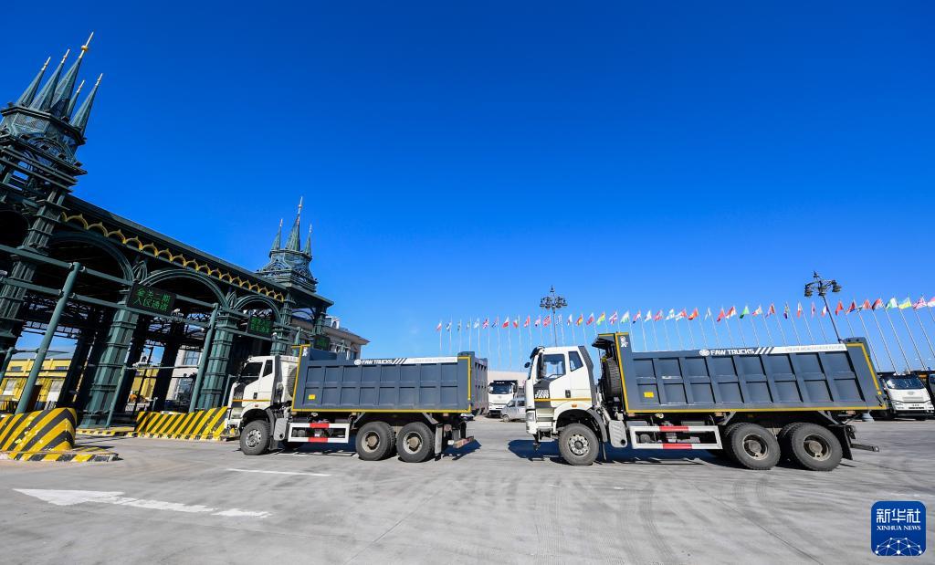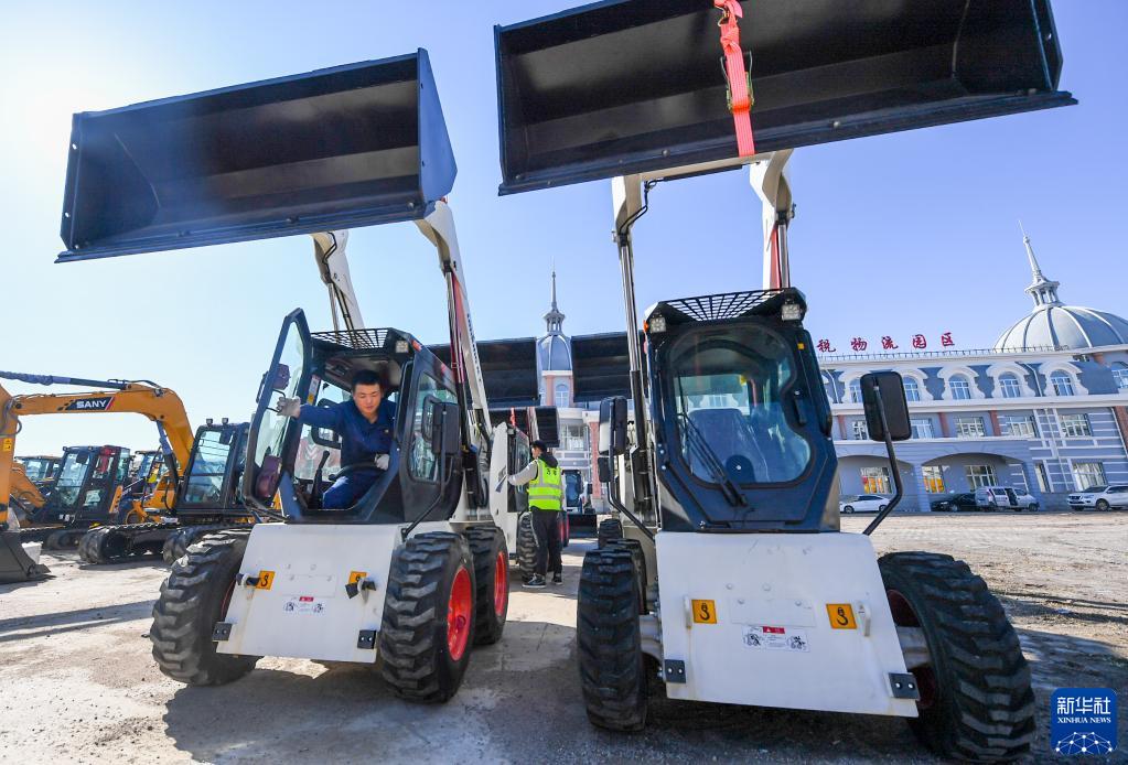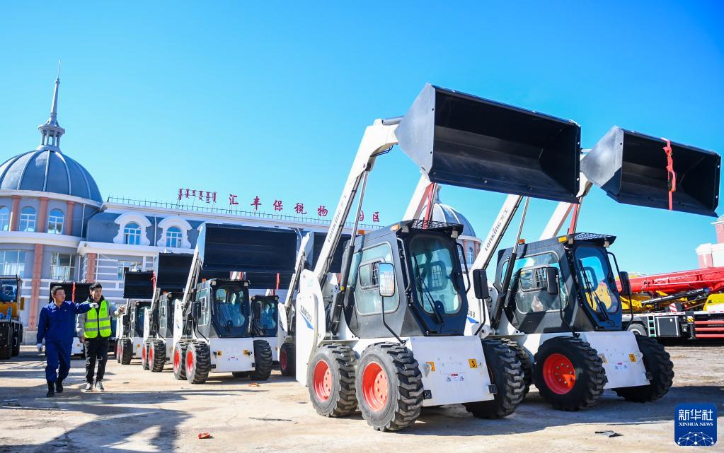 10月12日,工程车辆在满洲里综合保税区通关待检。 今年前三季度,满洲里综合保税区外贸出口额超7亿元,其中工程机械设备出口货值占60%以上。 新华社记者 彭源 摄