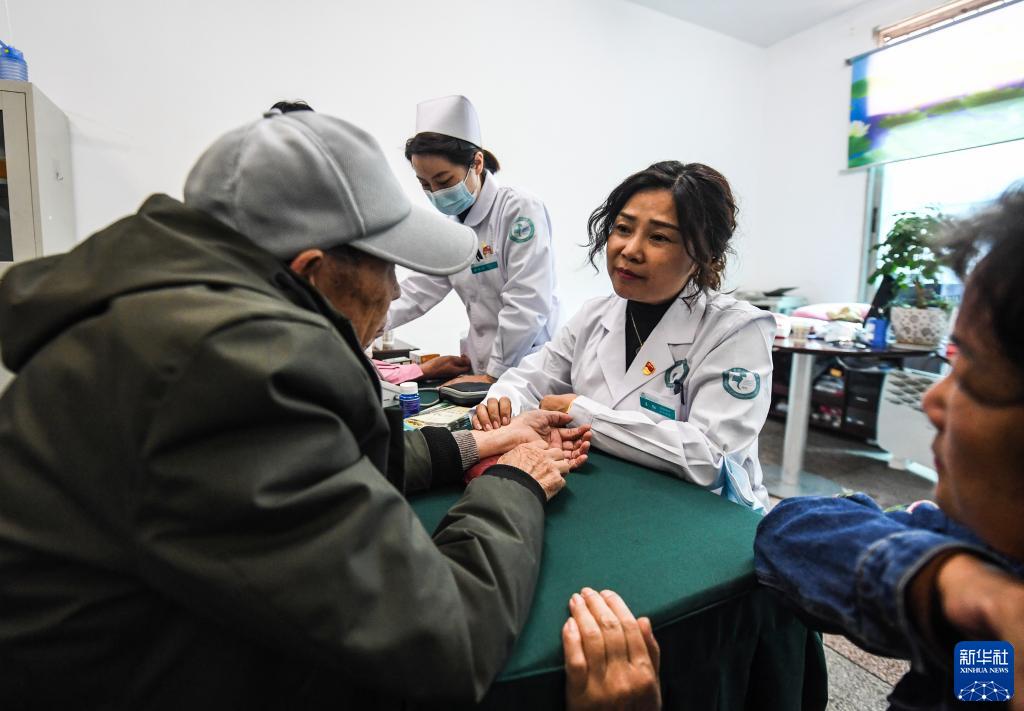 10月14日,医务工作者在六盘水市钟山区老年大学为老人义诊。