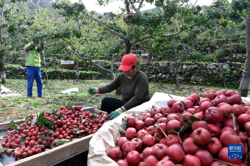 当下正值山楂收获期,天津市蓟州区官庄镇梁后庄村村民忙碌着采摘山楂,喜迎丰收。
