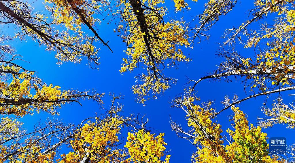 拉萨市林周县边交林乡一片树林(10月16日摄,手机照片)。 树树皆秋色,山山唯落晖。秋日的雪域高原落英缤纷,独具气质。 新华社记者 沈虹冰 摄