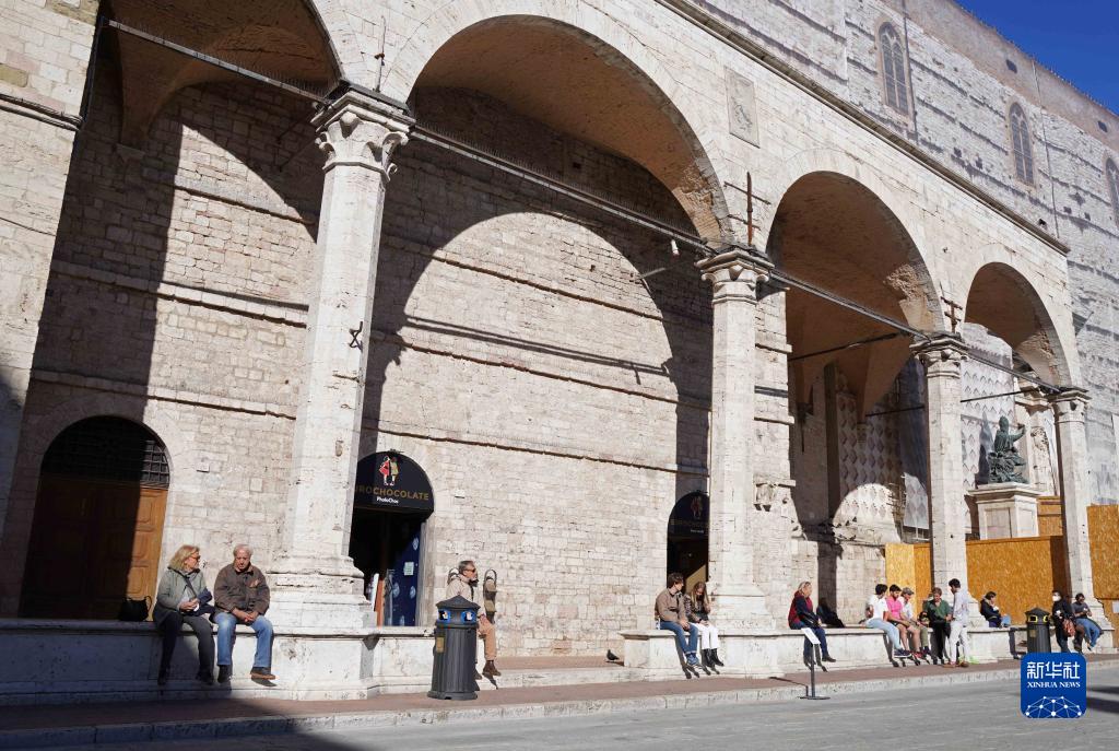 10月15日,游客在意大利佩鲁贾的十一月四日广场旁小憩。 美丽的山城佩鲁贾位于意大利中部,是翁布里亚大区的首府。整个城市依山而建,市内遍布中世纪及文艺复兴时期的各式建筑,吸引众多游客前来观光。 新华社记者 金马梦妮 摄