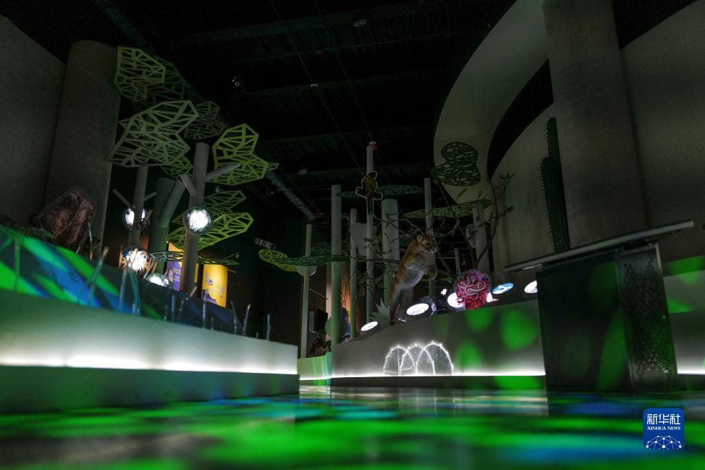 10月15日,在位于墨西哥首都墨西哥城的墨西哥国家生物多样性馆,一处展厅正在进行布置工作。