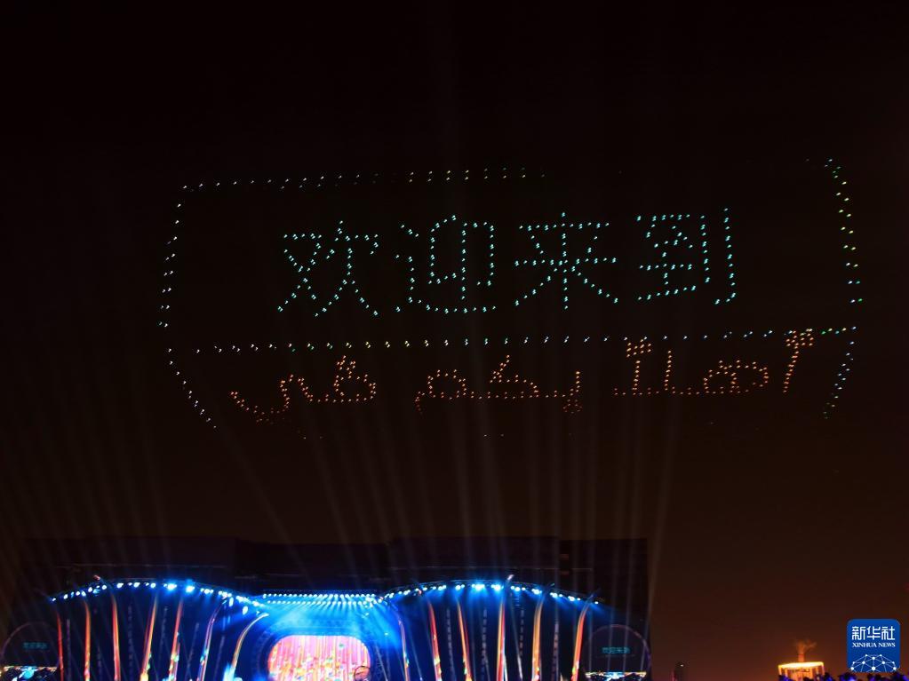 10月20日晚,在沙特阿拉伯首都利雅得举行的“利雅得狂欢季2021”开幕庆祝活动上,无人机组成多种语言的欢迎字样。 当晚,沙特阿拉伯首都利雅得举行活动,以花车游行、无人机表演、烟花秀等形式拉开“利雅得狂欢季2021”的序幕。利雅得狂欢季是沙特促进经济社会多样性举措的一部分,系列活动将持续到2022年3月。 新华社记者 胡冠 摄 |