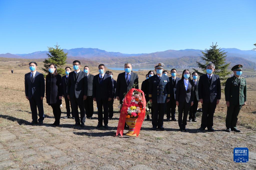 10月23日,在朝鲜咸镜南道西北部长津湖畔的长津邑中国人民志愿军烈士合葬墓地,中国驻朝鲜大使馆外交官向烈士献花并默哀致敬。新华社记者 江亚平 摄 陪同祭奠的朝鲜咸镜南道对外事业局局长郑成哲表示,中国人民志愿军在极为艰苦的情况下和拥有海陆空优势的美军展开较量,打击了美军的嚣张气焰。长津湖地区的朝鲜人都知道当年志愿军打击美军的英勇事迹,而且传颂至今。 而今,长津湖畔的炮声和硝烟早已散去,志愿军英烈们已在这里长眠了71年,他们的钢铁意志和高洁灵魂早已融入这片土地,化作周围巍峨的山脉,永远矗立在中朝两国人民的心中。 正如几位前来祭奠的中国外交官在祭文中所表示的那样,当年志愿军锻造的精神将由我们这一代人赓续发扬,当年志愿军未竟的事业将由我们这一代人接续担当。继承先烈遗志,在新时代继续发扬志愿军精神,正是中国外交官今天在长津湖畔祭扫英烈的意义所在。 |
