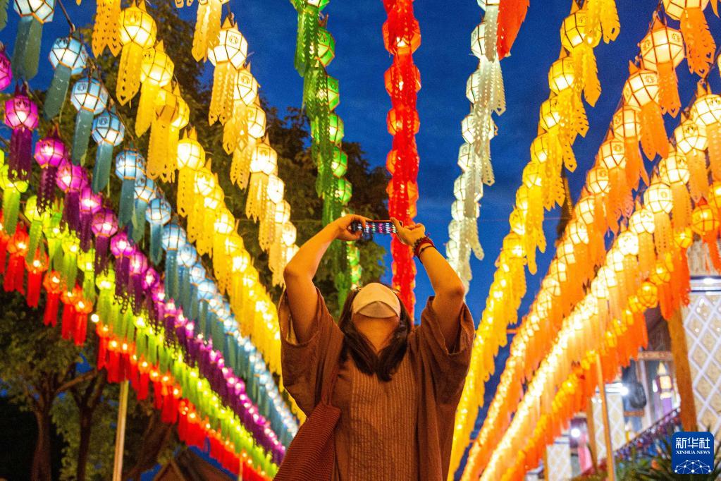 近日,泰国南奔府在哈利奔猜寺举办盛大灯会,吸引游人纷纷前来挂灯留影、祈福许愿。