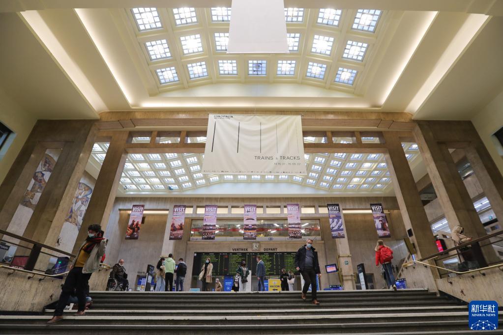 10月27日,人们在比利时布鲁塞尔中央火车站出行。