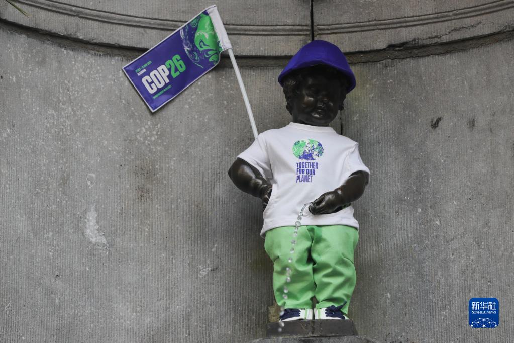 这是10月27日拍摄的比利时布鲁塞尔著名雕塑“小尿童”。 当天,工作人员为布鲁塞尔著名雕塑“小尿童”换上装扮,以呼应即将在英国格拉斯哥召开的《联合国气候变化框架公约》第二十六次缔约方大会。 新华社记者郑焕松摄