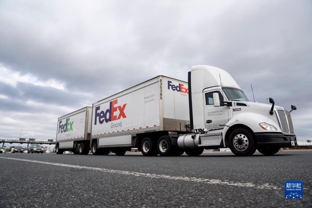 10月26日,集装箱卡车离开美国马里兰州巴尔的摩市港口。