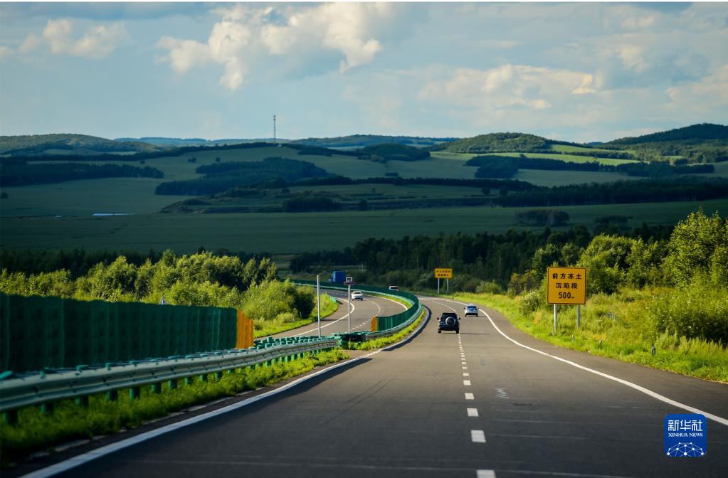 8月6日,汽车行驶在鄂伦春自治旗境内的G332国道上。 新华社记者 连振 摄