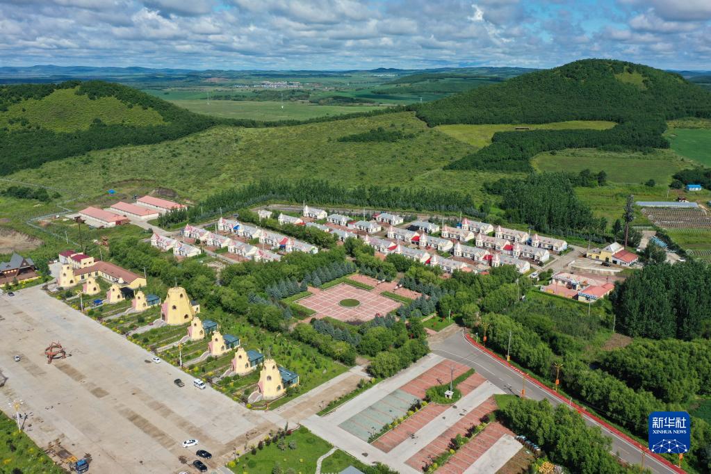 这是8月6日拍摄的鄂伦春自治旗大杨树镇多布库尔猎民村(无人机照片)。 新华社记者 刘磊 摄