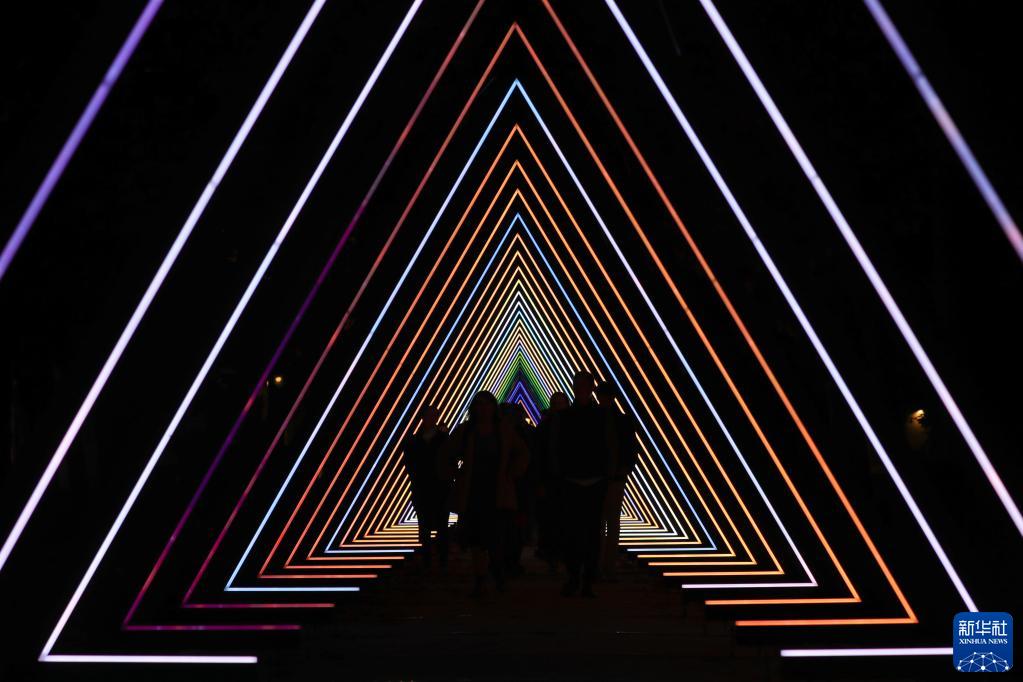 10月28日,人们在比利时布鲁塞尔参观灯光艺术作品。