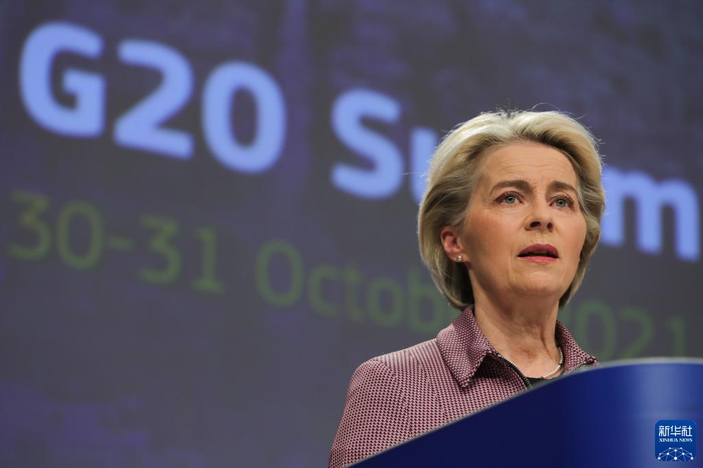 10月28日,欧盟委员会主席冯德莱恩在比利时布鲁塞尔就二十国集团领导人意大利峰会和格拉斯哥联合国气候变化大会举行新闻发布会。新华社记者郑焕松摄