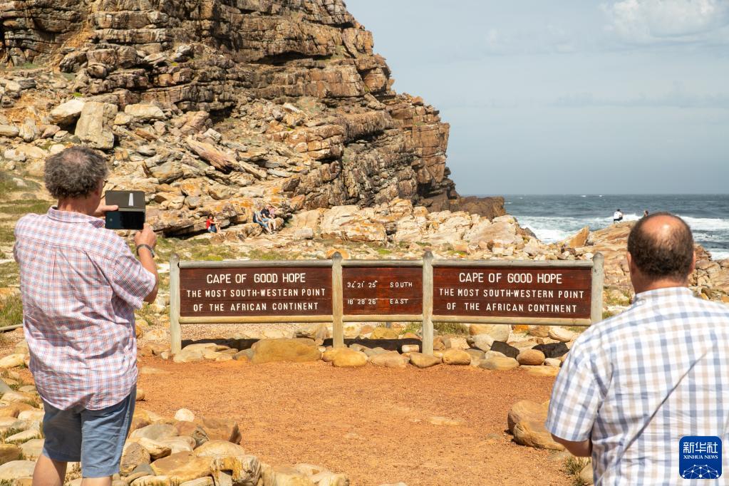 10月27日,在南非开普敦桌山国家公园的好望角区域,游客拍摄指示好望角位置的指示牌。 桌山国家公园位于开普敦市西部,是该市标志性自然景观。南非将于11月22日至28日举办“国家公园周”活动,期间大多数国家公园将免费开放。 新华社记者 吕天然 摄