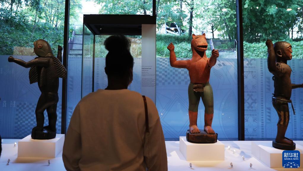 10月28日,一名女子在法国巴黎凯布朗利博物馆参观即将归还贝宁的文物。