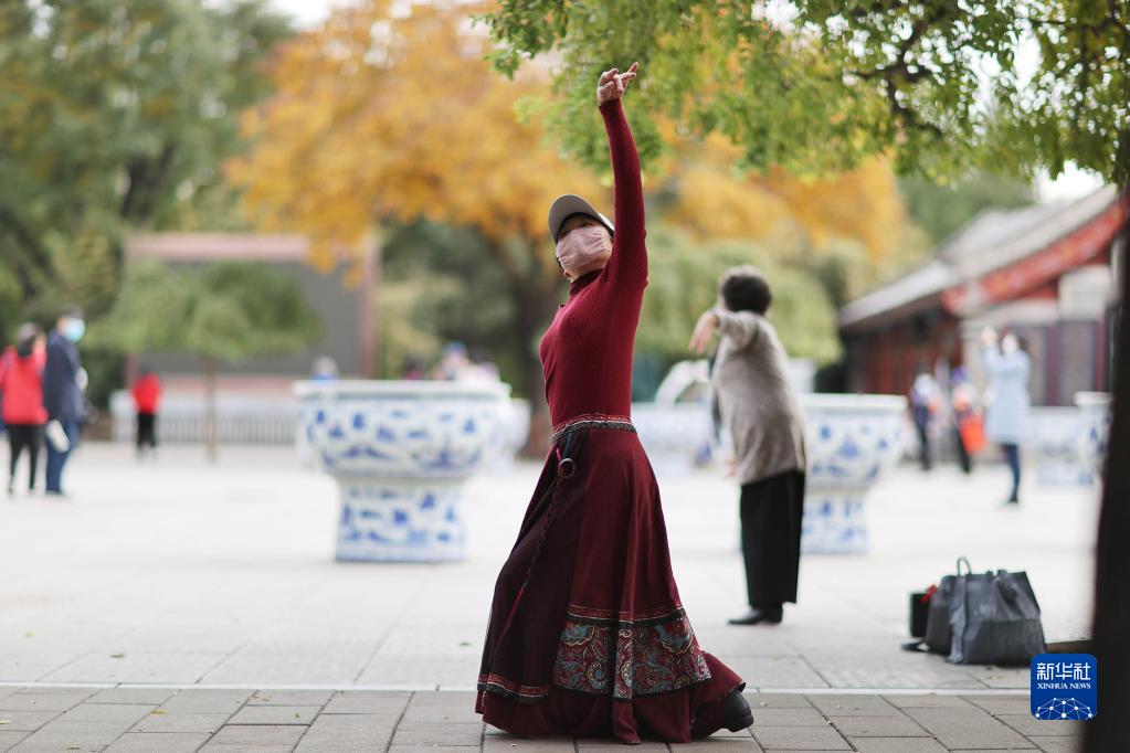 10月28日,市民在北京景山公园晨练。 金秋时节,北京秋色正浓,游客尽享美景。 新华社记者 邢广利 摄