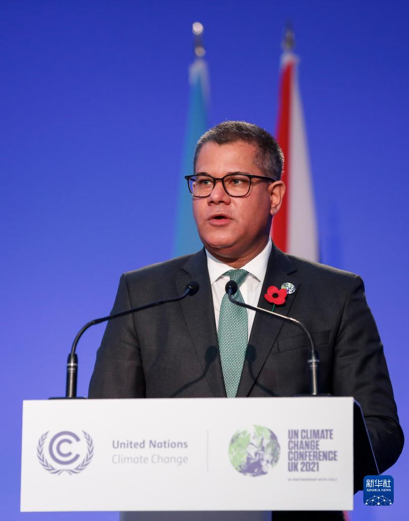 10月31日,《联合国气候变化框架公约》第26次缔约方大会主席夏尔马在英国格拉斯哥举行的大会开幕式上发言。当日,《联合国气候变化框架公约》第26次缔约方大会在英国格拉斯哥开幕。新华社记者 韩岩 摄