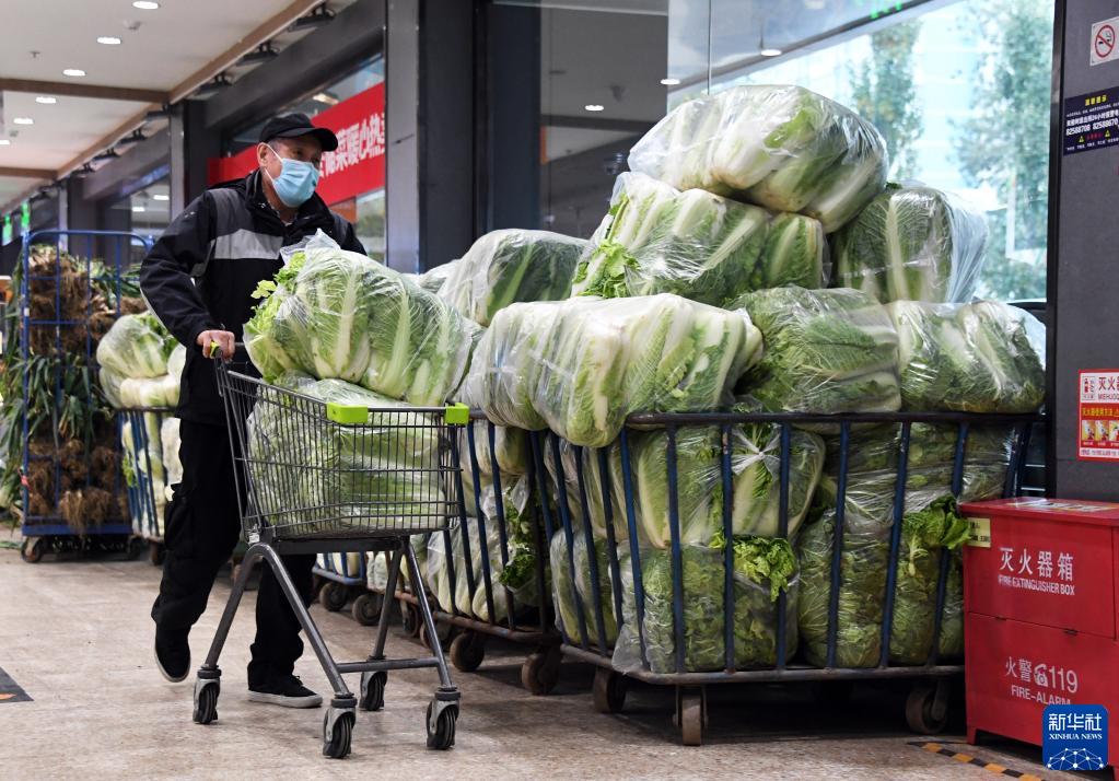11月2日,在超市发双榆树店,市民在选购大白菜。