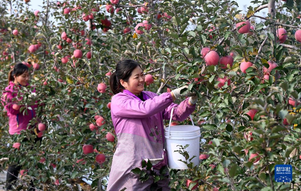11月2日,陕西省铜川市耀州区寺沟村的果农在采摘苹果。