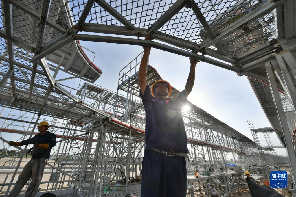 美兰空港一站式飞机维修基地项目,位于海口美兰国际机场东侧,规划占地面积224.31亩。项目建成投入运营后,将服务于全球市场,提供以机体维修和附件维修为主的飞机维修服务。目前,该项目已完工并开始进行联合验收,将于年底前交付使用,计划在明年初投入运营。新华社记者 郭程 摄