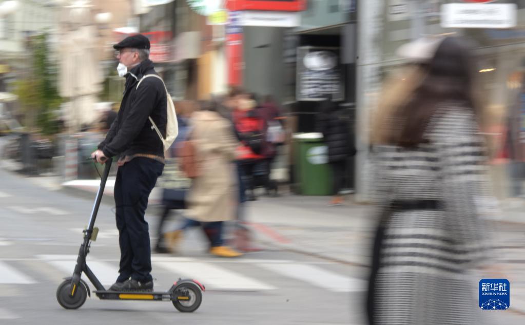 11月8日,人们在奥地利维也纳街头出行。 近期,奥地利疫情出现反复,每日新增感染人数大幅上涨,自11月8日起,奥地利政府收紧防疫措施。 新华社记者 郭晨 摄