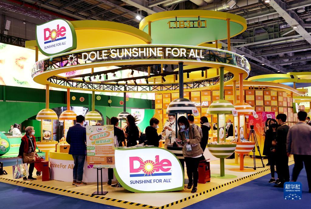 11月8日在第四届进博会食品及农产品展区拍摄的一个展台。 新华社记者 王翔 摄 |