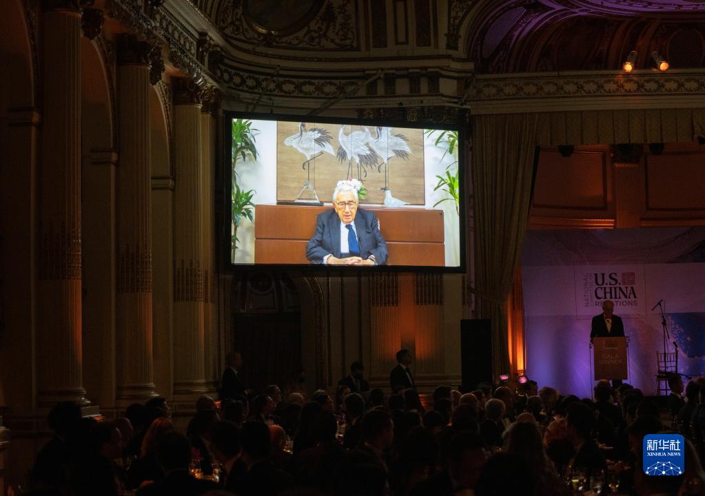 11月9日,美国前国务卿基辛格在美国纽约举行的美中关系全国委员会2021年度晚宴上通过视频发言。新华社记者 王迎 摄 美国前国务卿基辛格通过视频发言说,美中两国克服困难至关重要,更为重要的是找到相互合作的领域,当今世界各国必须找到合作共存之道。 雅各布·卢在发言中说,稳定双边关系必须是美中两国共同的优先事项和责任,这意味着相互接触,通过双边和多边方式解决共同关心的国际问题,建立更加可预见的双边关系。卢认为,美中关系的稳定始于加强沟通,近期两国政府间会谈的增加令人鼓舞,希望这种会谈能更加频繁。“‘二轨’对话能够为坦率交流提供空间,私营部门尤其可扮演重要角色,为双边关系的改善营造政治氛围。”