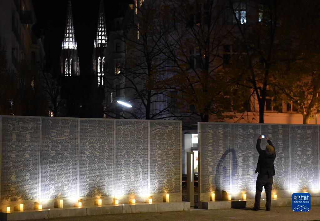 11月9日,在奥地利维也纳,人们站在新落成的大屠杀纪念墙前。 奥地利首都维也纳的大屠杀纪念墙9日正式落成,以此缅怀大屠杀中的遇难者。据介绍,纪念墙上铭刻了1938年至1945年间遇难的64440名奥地利犹太人的名字。奥地利总理沙伦贝格、遇难者家属及各界代表出席了落成仪式。 新华社记者 郭晨 摄