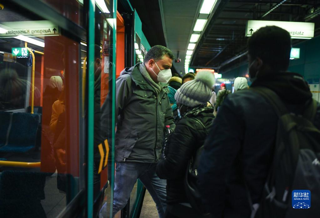 11月10日,人们在德国法兰克福一处地铁站乘车。 德国疾控机构罗伯特·科赫研究所10日报告,德国单日新增新冠确诊病例39676例,创下德国暴发疫情以来的最高纪录。 新华社记者 逯阳 摄