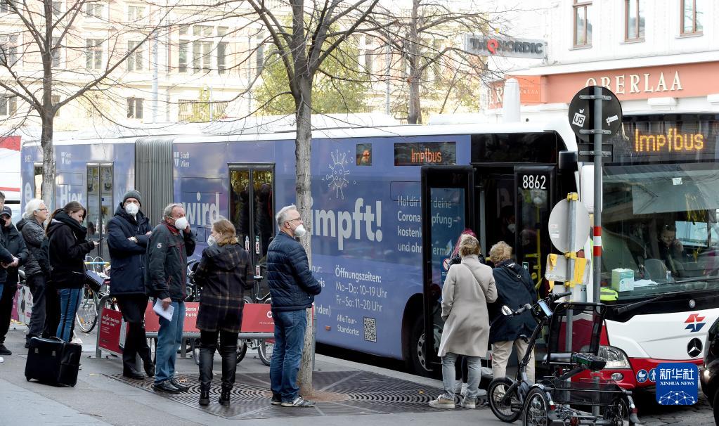 11月10日,市民在奥地利维也纳街头疫苗接种车前等待接种新冠疫苗。