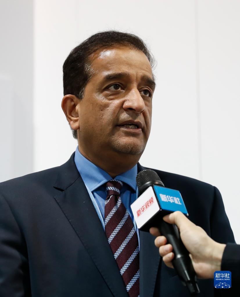 11月9日,在英国格拉斯哥进行的《联合国气候变化框架公约》第二十六次缔约方大会(COP26)期间,巴基斯坦气候变化部长马利克·阿明·阿斯拉姆接受新华社记者采访。 新华社记者 韩岩 摄