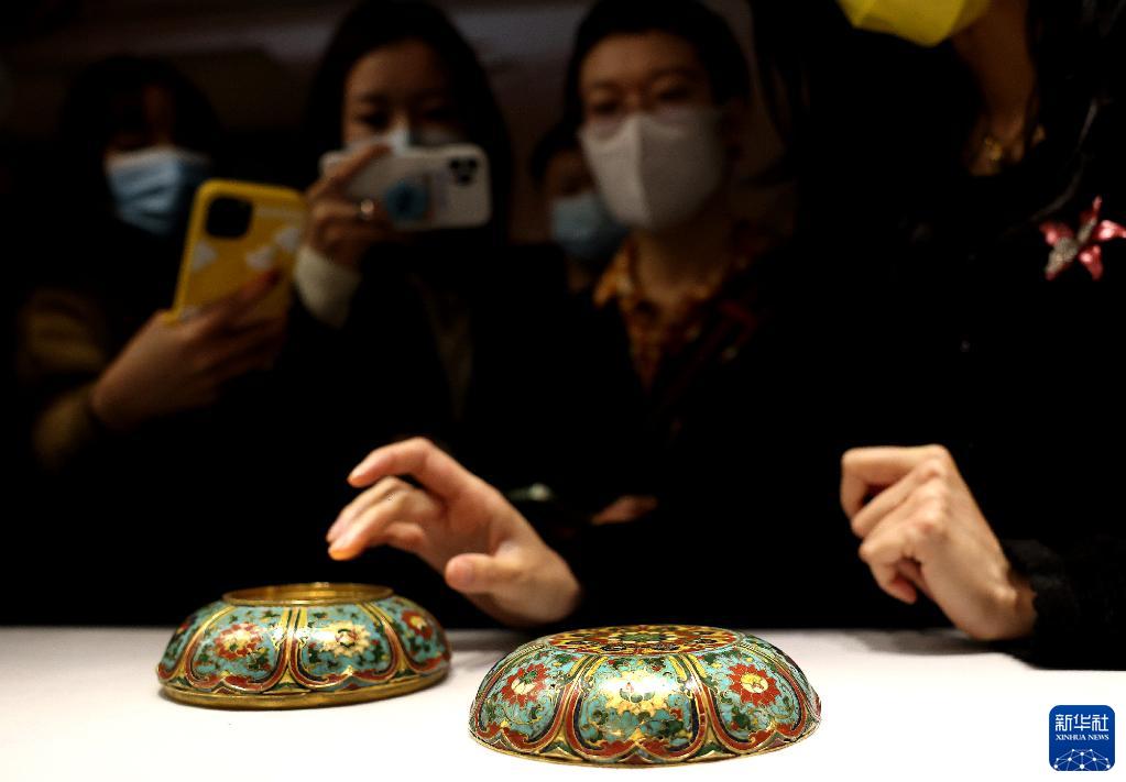 11月11日,参观者观看等待拍卖的中国景泰年间的工艺品。