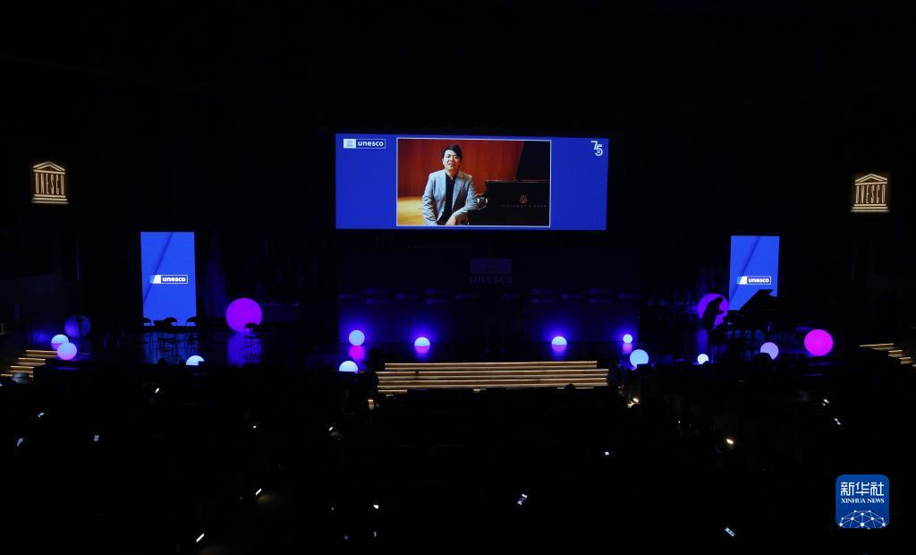 11月12日,中国钢琴家郎朗通过视频方式参与在法国巴黎举行的联合国教科文组织成立75周年庆典活动。新华社记者 高静 摄