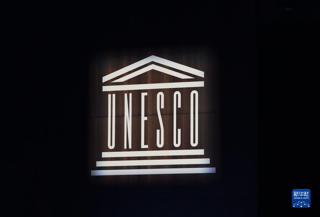 这是11月12日在法国巴黎举行的联合国教科文组织成立75周年庆典活动上拍摄的联合国教科文组织标识。新华社记者 高静 摄 |