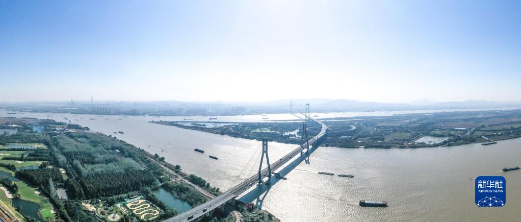 润扬长江大桥沿江风光(11月10日摄,无人机照片 )。