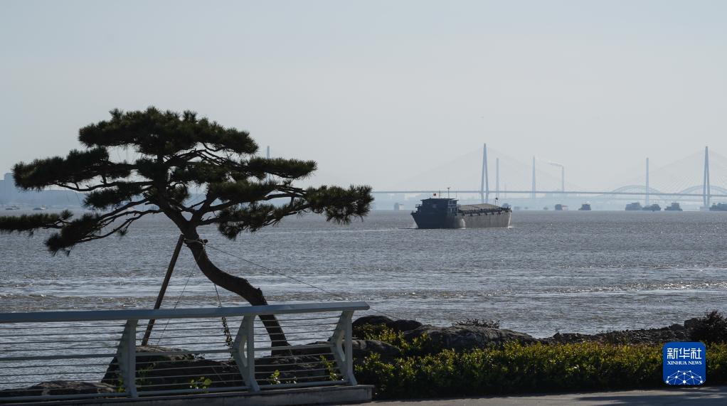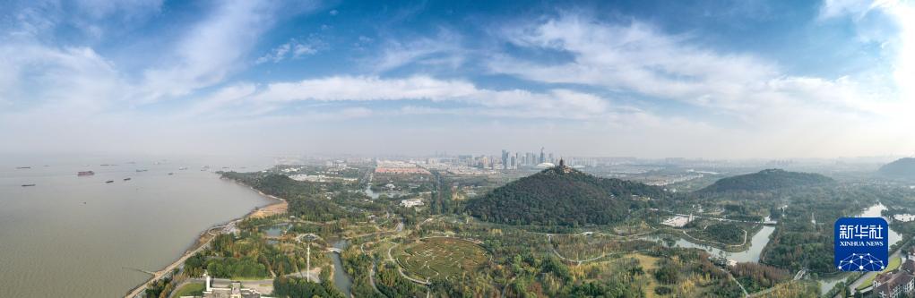 位于南通市的狼山国家森林公园沿江景色(11月13日摄,无人机照片)。