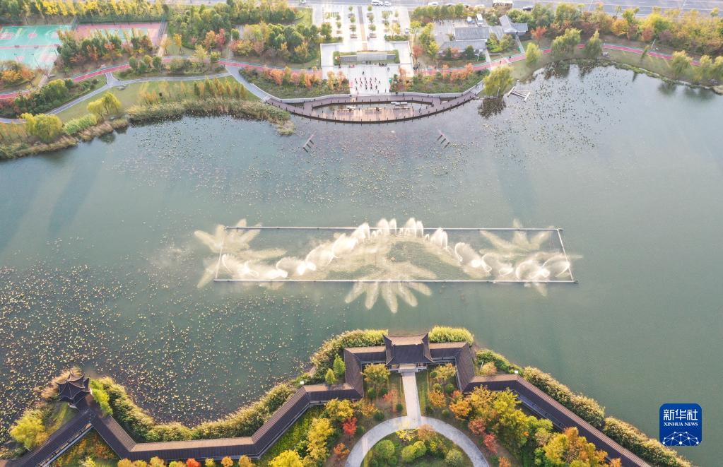 仪征市扬子江公园景色(11月9日摄,无人机照片)。