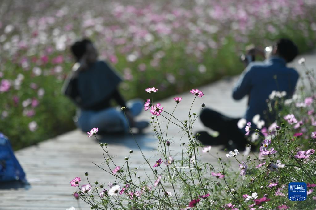 11月14日,游客在仙居县白塔镇景园村附近的花海拍照。 近年来,浙江省仙居县不断推进神仙居旅游度假区核心景区提质、区域环境综合整治、交通组织优化、村庄立面改造等工作,以持续丰富的旅游业态推进全域旅游示范区建设,大力发展美丽经济。 新华社记者 黄宗治 摄
