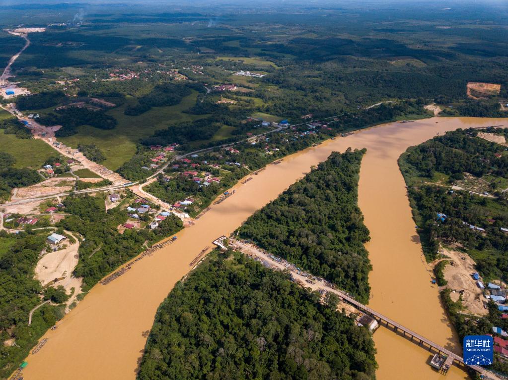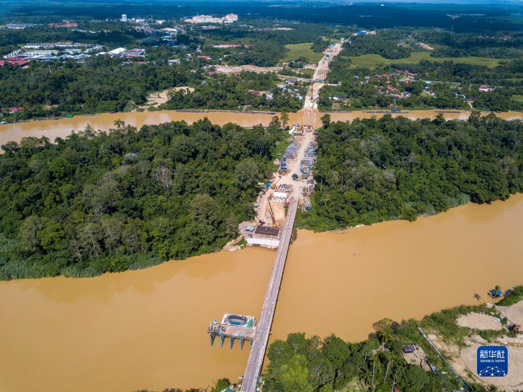 这是11月9日在马来西亚彭亨州淡马鲁县拍摄的建设中的马东铁项目30号桥(无人机拍摄)。新华社记者 朱炜 摄 |