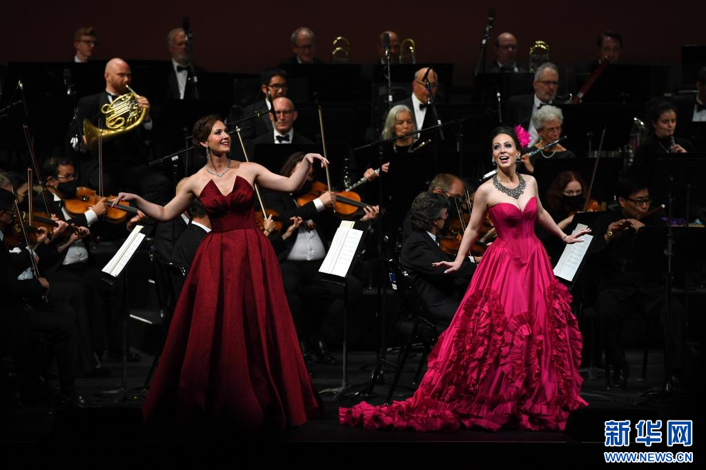 11月13日,在美国纽约林肯中心,女高音歌唱家埃丝特·莫琳·凯莉(前左)与花腔女高音歌唱家霍莉·弗莱克(前右)表演根据中国古诗词改编的歌曲《咏鹅·咏雪》。新华社记者 李睿 摄 新华社纽约11月13日电(记者潘丽君 张墨成)“中华风韵”交响音乐会“东西之间”13日晚在美国纽约林肯中心奏响,为观众带来充满东方魅力的音乐盛宴。 当晚,“中华风韵”携手纽约城市芭蕾舞团交响乐团、在美华人艺术家及美国本土艺术家推出“东西之间”,这也是新冠疫情发生以来“中华风韵”项目首次在北美举行的线下演出。 音乐会上,音乐家们演奏了小提琴协奏曲《梁祝》、二胡协奏曲《长城随想》等佳作。两名美国女歌唱家用中文演唱根据中国古诗词改编的歌曲《咏鹅·咏雪》,博得观众阵阵掌声。 参与当晚演出的美国花腔女高音歌唱家霍莉·弗莱克说,中国文化独具魅力,而中西融合的演绎方式有助于增进东西方之间的相互了解,促进文化交流。 观众诺拉·科布莱尼克说,这场音乐会令她大饱耳福,也让她对博大精深的中国文化更加向往。 除“东西之间”交响音乐会外,“中华风韵”将于本月28日在林肯中心举办一场聚焦当代华人作曲家代表作的专场演出。 “中华风韵”是中国对外文化集团有限公司着力打造的文化交流品牌,旨在向各国推介中国表演艺术精品力作。 |