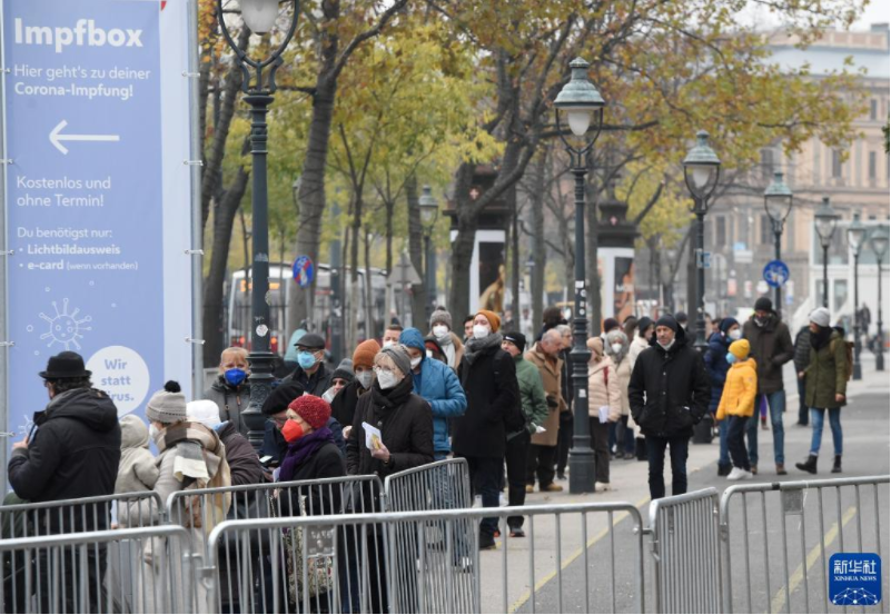 11月10日,市民在奥地利维也纳街头疫苗接种车前等待接种新冠疫苗。 据奥地利内政部10日消息,奥地利过去24小时新增新冠确诊病例11398例。奥地利政府近期收紧了防疫措施。 新华社记者 郭晨 摄