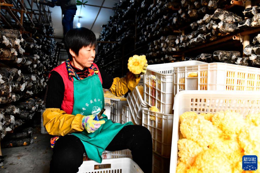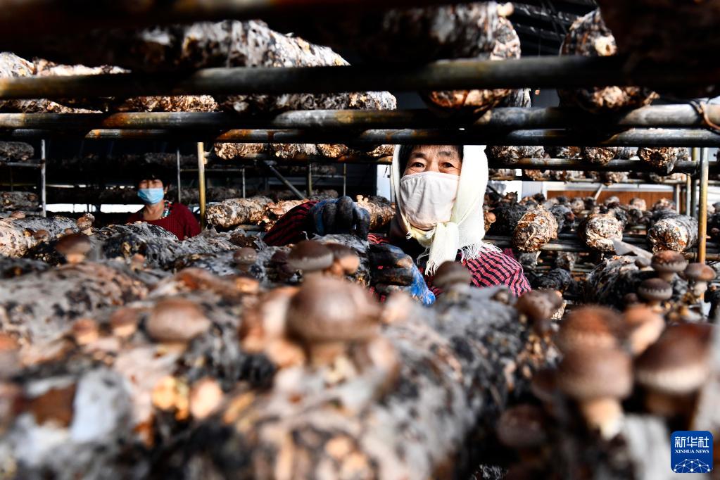 11月18日,在惠民县现代农业产业园食用菌示范园,农民在采摘香菇。 山东省惠民县自上世纪80年代就开始种植食用菌,近年来,该县推广现代设施栽培,着力优化产业布局,强化精深加工,培育壮大龙头企业。目前,全县食用菌种植面积995万平方米,带动10余万人就业。食用菌产业已成为当地创富于民、增富于民和推动脱贫攻坚与乡村振兴有效衔接的重要产业。 新华社记者 郭绪雷 摄