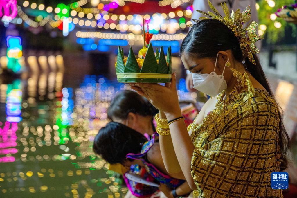 当日是泰国传统节日水灯节,泰国民众前往河流沿岸施放水灯,祈求未来平安如意。