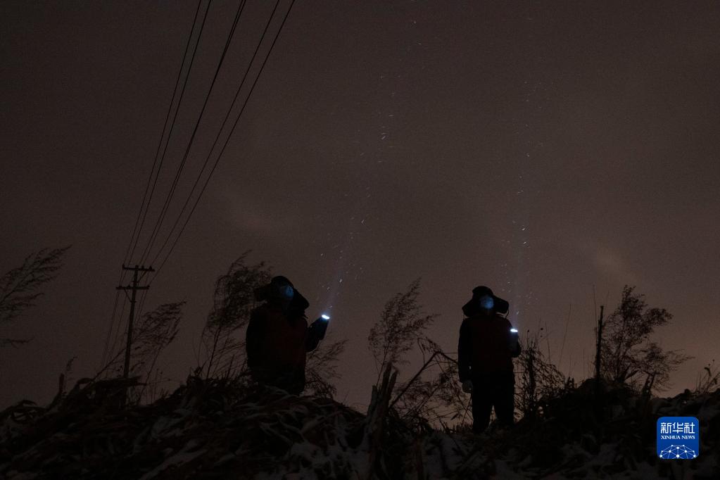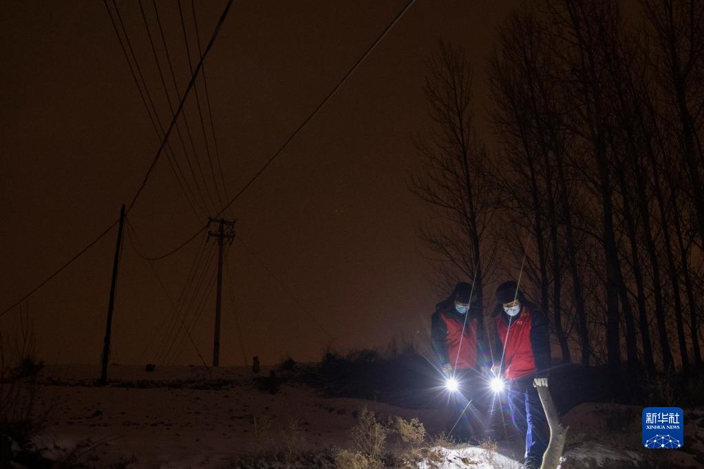 11月21日晚,国网鸡西供电公司的工人在雪中巡查线路。 黑龙江省鸡西市气象局于11月22日03时50分将暴雪橙色预警信号升级为暴雪红色预警信号。为保障当地物资运输畅通、居民出行便利,鸡西市相关部门迅速组织除雪力量,一夜无眠的“逆行者”在暴雪中用自己的辛苦付出,保障城市有序运转和居民正常生活。 新华社记者 张涛 摄