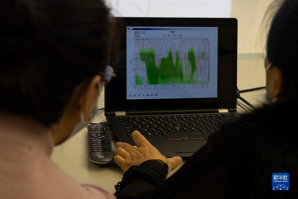 11月21日晚,在鸡西市气象局,工作人员在进行天气监测。 黑龙江省鸡西市气象局于11月22日03时50分将暴雪橙色预警信号升级为暴雪红色预警信号。为保障当地物资运输畅通、居民出行便利,鸡西市相关部门迅速组织除雪力量,一夜无眠的“逆行者”在暴雪中用自己的辛苦付出,保障城市有序运转和居民正常生活。 新华社记者 张涛 摄