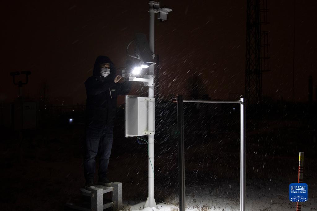 11月21日晚,在鸡西市气象局,工作人员在雪中巡查设备。 黑龙江省鸡西市气象局于11月22日03时50分将暴雪橙色预警信号升级为暴雪红色预警信号。为保障当地物资运输畅通、居民出行便利,鸡西市相关部门迅速组织除雪力量,一夜无眠的“逆行者”在暴雪中用自己的辛苦付出,保障城市有序运转和居民正常生活。 新华社记者 张涛 摄